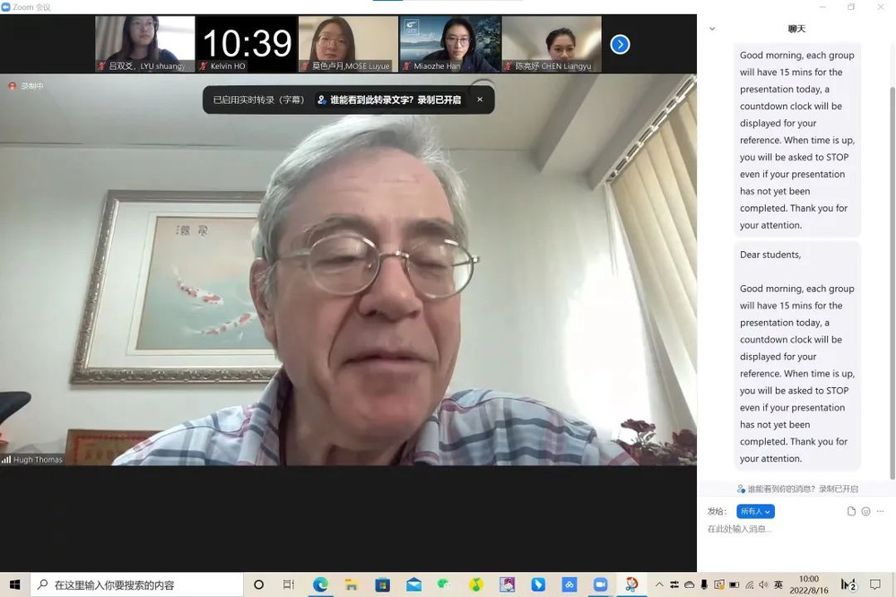 课程过半,Hugh Thomas教授还与各个小组分别进行meeting discussion,在了解了各个小组的项目进度后,对各个小组的presentation提出意见和建议。