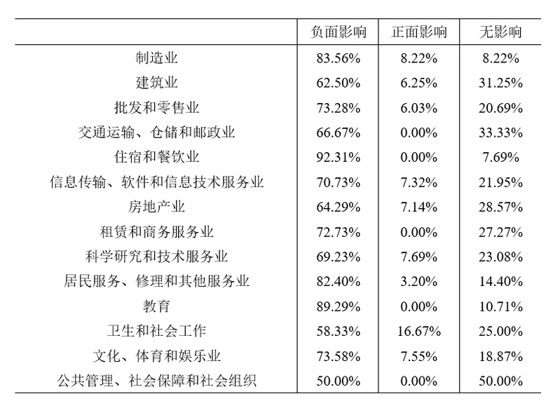 表1 不同行业小微企业和个体工商户受新冠疫情影响的情况