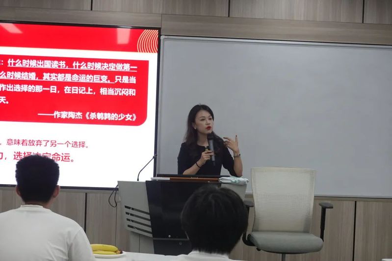 首先邀请到的是中信证券杭州火炬大道证券营业部团队负责人周颖、副团队长包佳怡来到现场进行宣讲,这也是中信证券这一年度在我校开展的第一场宣讲会。