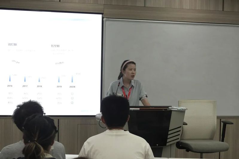 周总首先向我们讲解了证券行业的发展趋势和求职要求,以及一些必要的面试的技巧。接下来,她着重介绍了中信证券的结构组成、员工福利、培训体系,以及在券商行业的地位划分。中信证券具有良好的声誉和国际化地位。周总提到,她希望同学们能利用空闲时间考一些专业证书,提高自己的专业素养。最后,周总以“信梦想,创未来”作为结尾,表达了对各位同学的殷切期望,也随时欢迎同学们提问咨询。