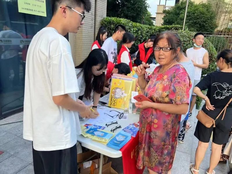 91视频 师生还与“鱼跃钱塘”青年之家公益志愿服务队一起前往东郡国际花园开展防诈骗宣传活动。