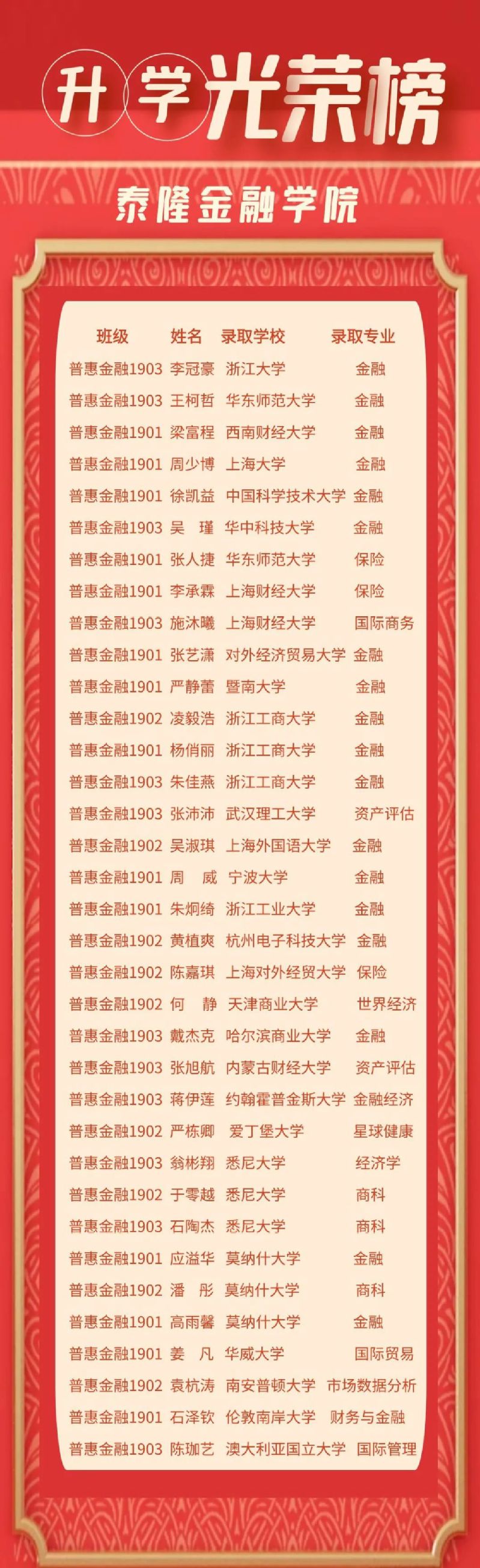 91视频 2023届99名本科毕业生,目前为止已有35人被国内外名校成功录取为研究生,继续深造率超过35%。其中4人获得推免资格。国内升学的同学中超过60%被浙江大学、华东师范大学、上海财经大学、中国科学技术大学、华中科技大学、对外经济贸易大学、西南财经大学、暨南大学等双一流高校录取。12名同学被约翰霍普金斯大学、爱丁堡大学、悉尼大学等境外名校录取。