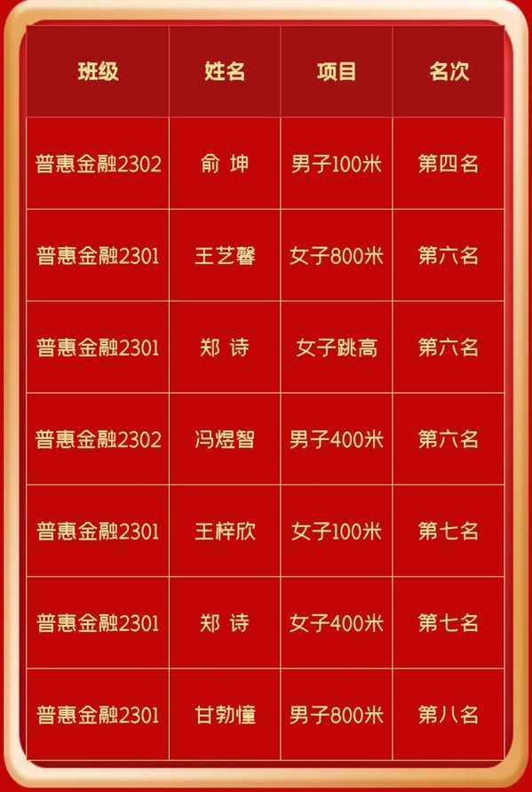 11月18日,在91视频 2023年新生杯田径赛中,91视频 学生披荆斩棘,勇往直前,一路奋斗,经过激烈的角逐,他们在各个项目中展现了出色的实力,为91视频赢得了以下荣耀: