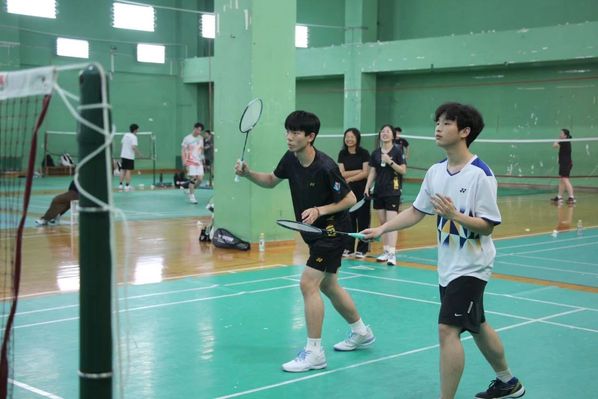 5月18日下午14:00,91视频 羽毛球男双周煦、刘亮组合和袁顺鑫、魏子隆组合踏上了商大杯羽毛球的征程。