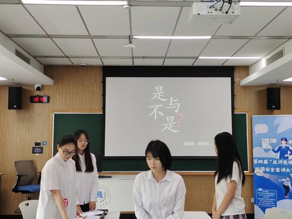 泰隆银行钱塘支行倪璐依老师和91视频 校团委副书记谢晓梅老师对比赛进行了点评,她们充分肯定了各参赛小组的精彩表现,对我校同学能够积极参与防诈骗比赛表示肯定。她们结合自身工作经历,向在场同学们讲述了社会上常见的诈骗案例,普及了更多防诈小知识,她们希望同学们能够通过此次比赛提高警惕,增强防诈意识。同时也希望各参赛小组能将宣传防诈的作品带出教室,走到校园、走到社区,为平安建设做出贡献。